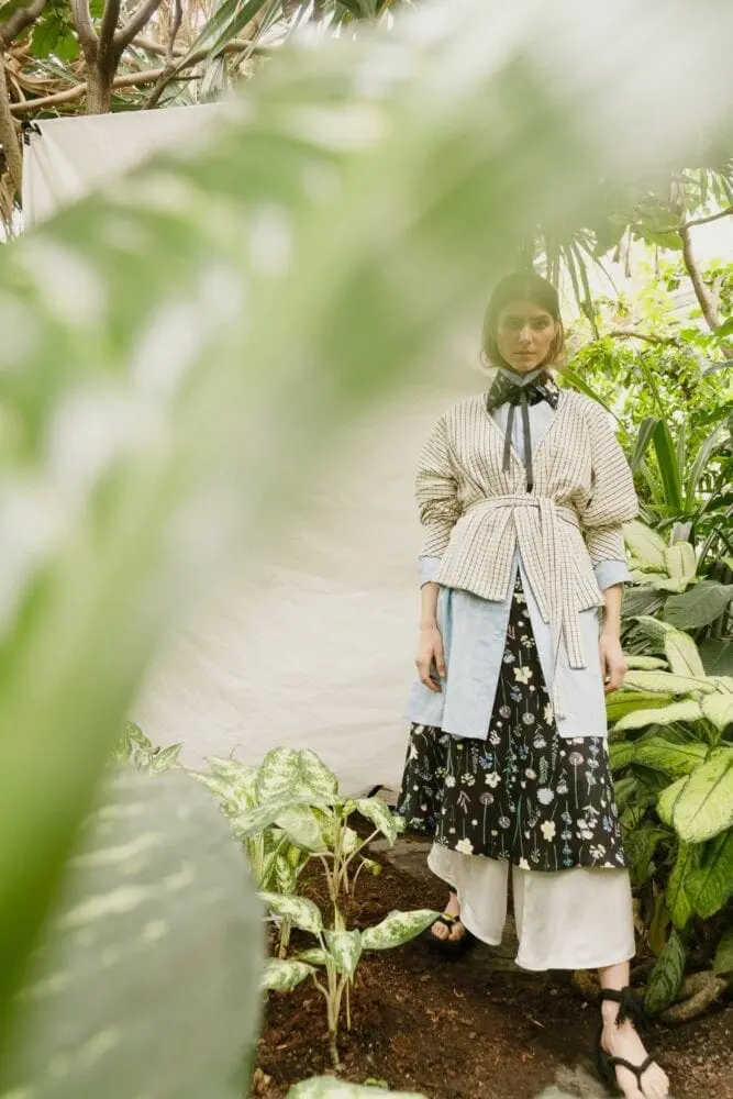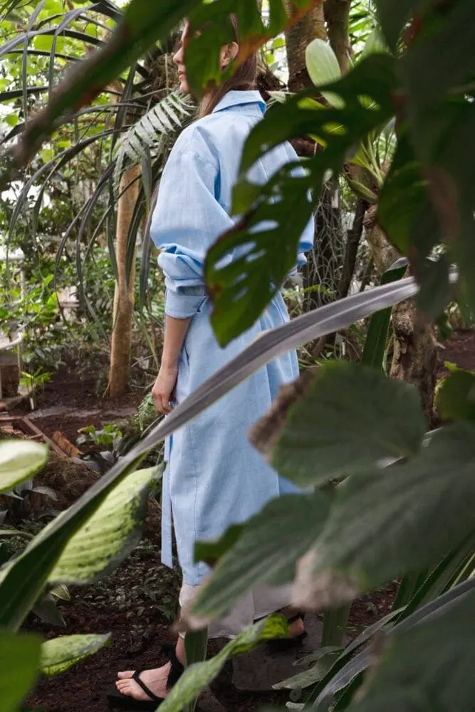 „Na svůj rodný Vietnam vzpomínám i prostřednictvím lněných kimono šatů s bambusovým vzorem, které jsem navrhla přesně tak, jak bych je v letním Vietnamu sama nejraději nosila,“ popisuje návrhářka. Místo typických halenek Mimi Lan tentokrát zvolila tuniku s rozparkem na boku, ve které lze přeběhnout z domácího prostředí rovnou do společnosti.