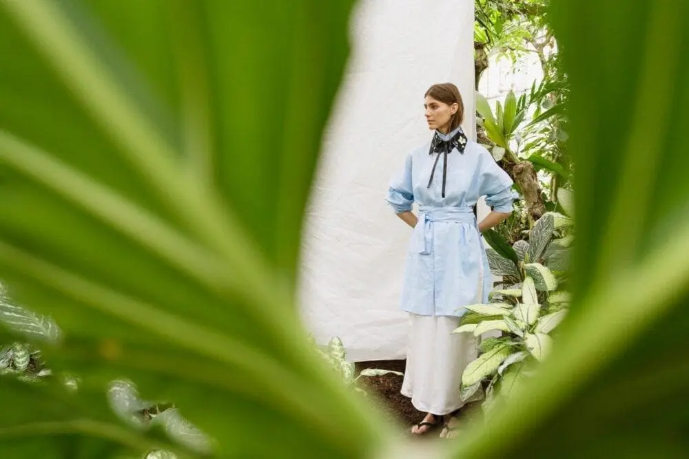 „Na svůj rodný Vietnam vzpomínám i prostřednictvím lněných kimono šatů s bambusovým vzorem, které jsem navrhla přesně tak, jak bych je v letním Vietnamu sama nejraději nosila,“ popisuje návrhářka. Místo typických halenek Mimi Lan tentokrát zvolila tuniku s rozparkem na boku, ve které lze přeběhnout z domácího prostředí rovnou do společnosti.