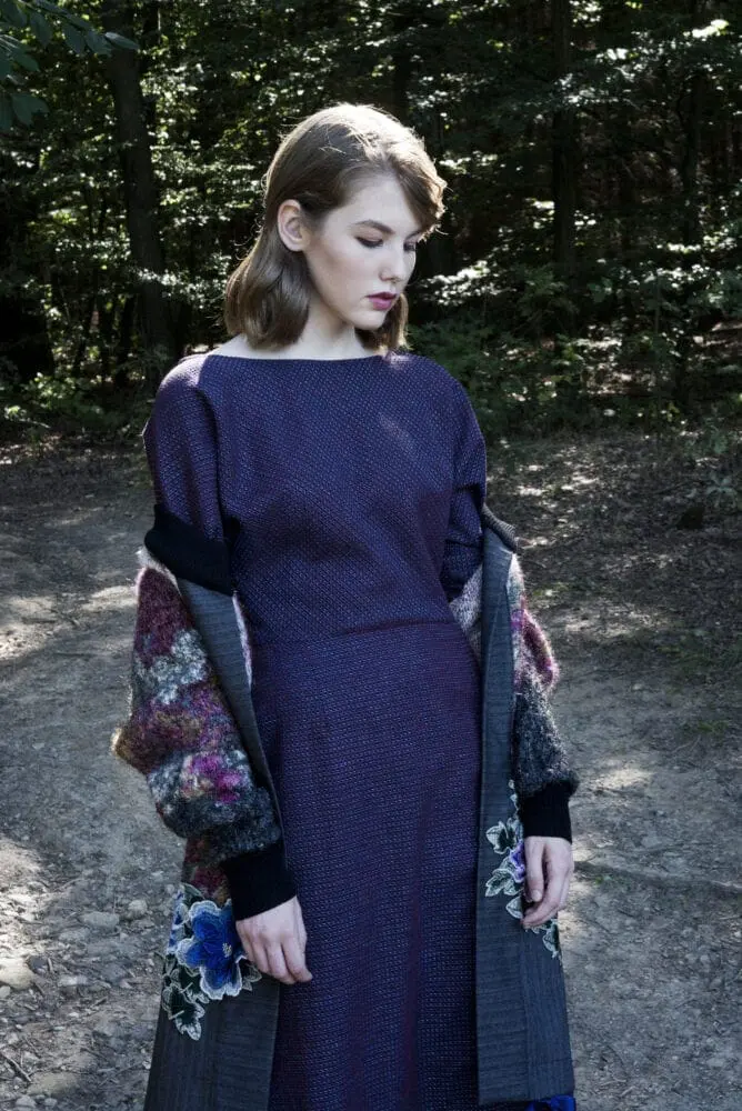 V tomto milostném trojúhelníku tradičně získávají prostor i materiály nebo fragmenty z předchozích kolekcí či kvalitních secondhandových kousků. „V každé ze svých kolekcí se snažím poukázat na nedoceněnost kvalitních materiálů a kousků oblečení, které by normálně nezískaly druhou příležitost. Vzniklo proto například kimono našeho klasického střihu zdobené použitým pytlíkem vietnamské rýže nebo kvalitní značkový svetr doplněný o ručně vyřezávané knoflíčky ze slonové kosti, které zahřejí podobně jako ojedinělost lučního květu ve vysokých horách,“ přibližuje své hodnoty a techniky Mimi Lan Nguen.
