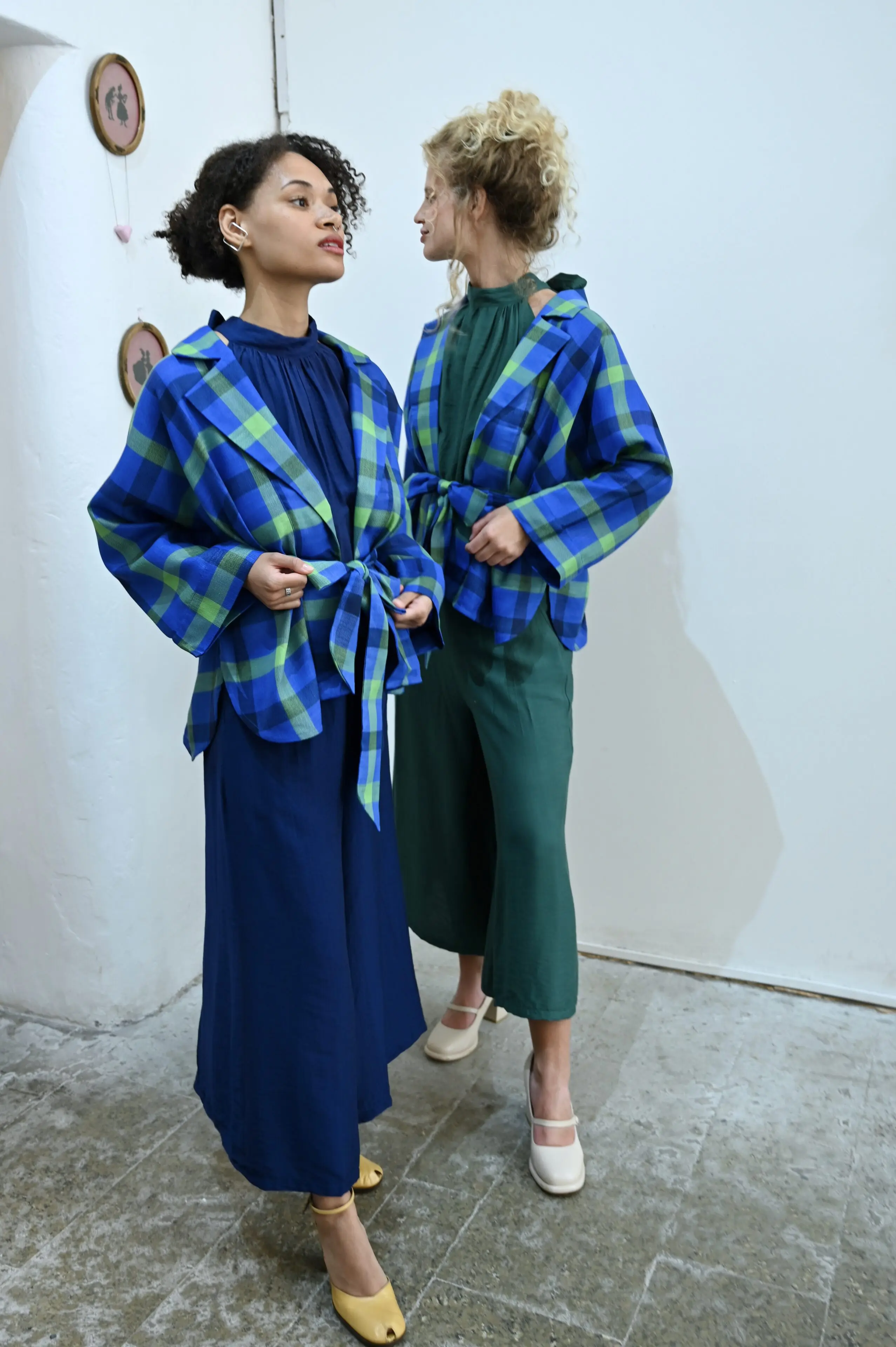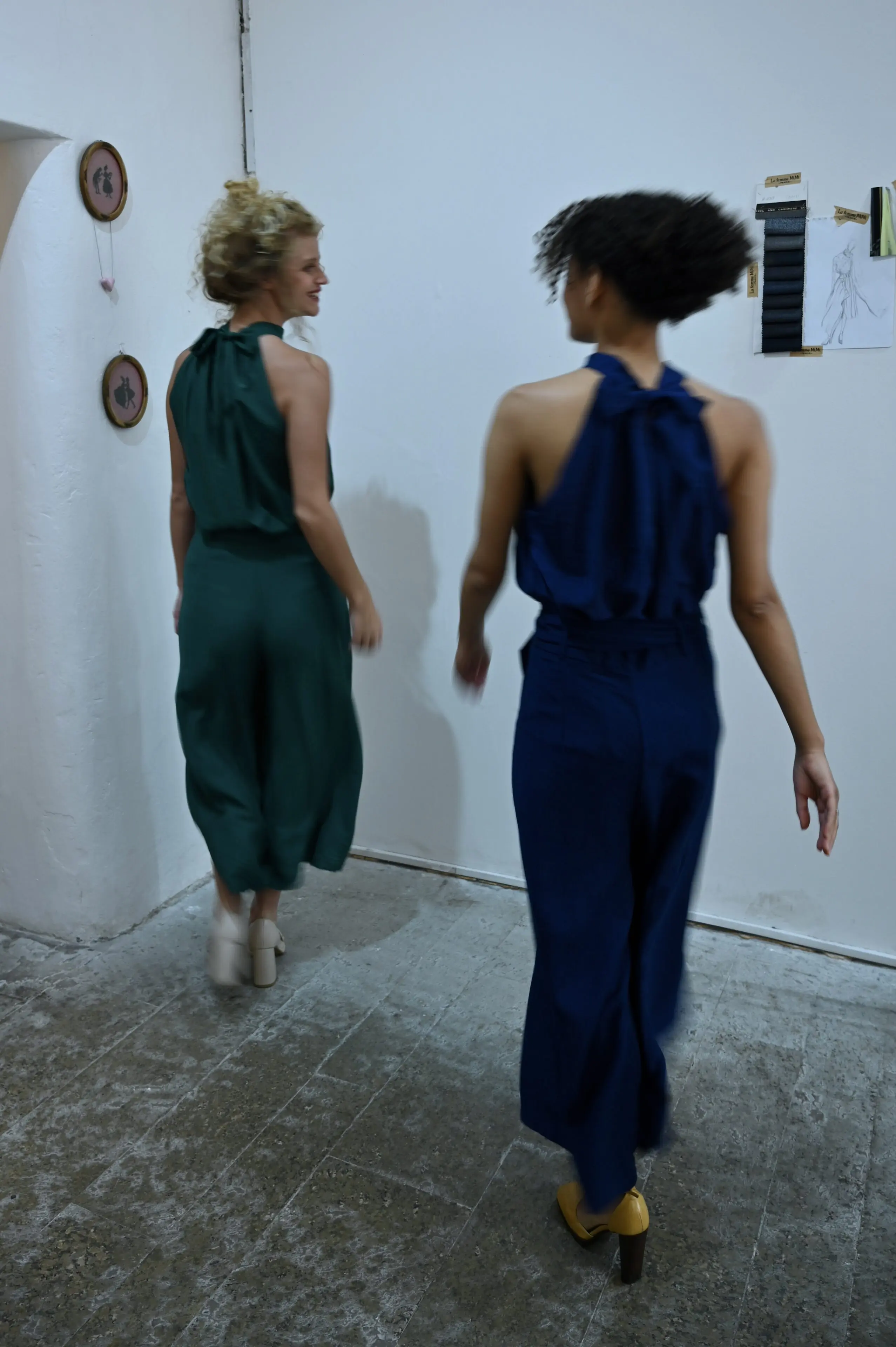 The material is linen with silk, there is no more ideal fabric for the heat of the city and sunny meadows.