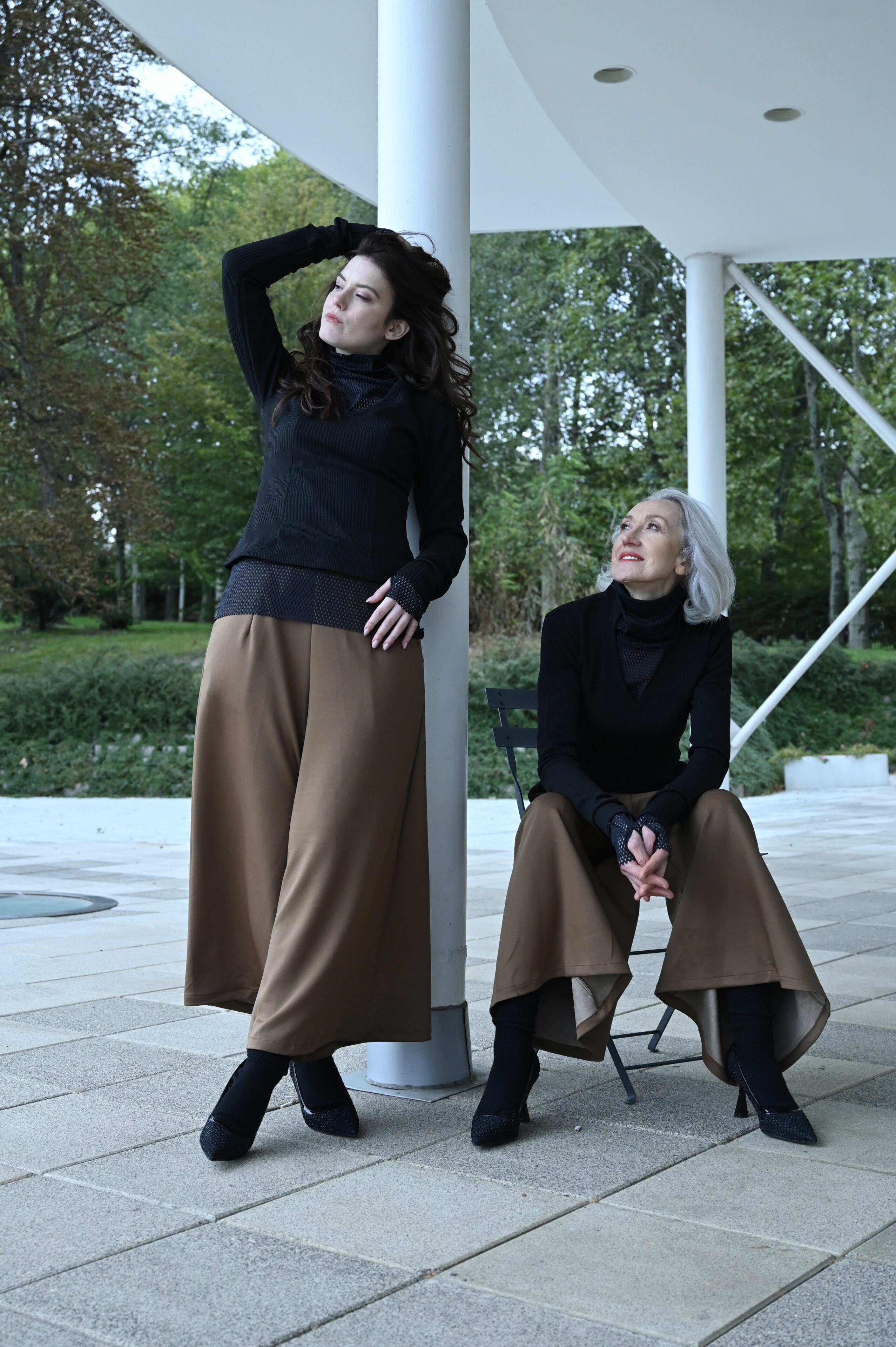 Kalhot na zimu není nikdy dost a rozhodně ne těhlech. Volný široký střih připomíná sukni ale praktičnost zůstává v nohavicích. A to není vše, jsou totiž vyrobené z božsky hebounkého veganského semiše.