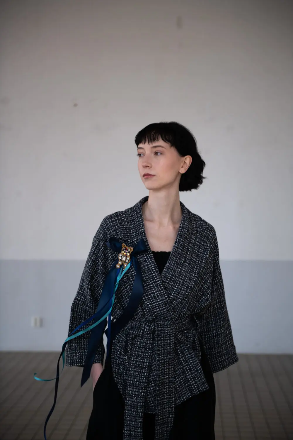 Antonie má na sobě kimono-sako-kabátek, tento střih znáte…jen ted máme v jiném provedením a s podšívkou.