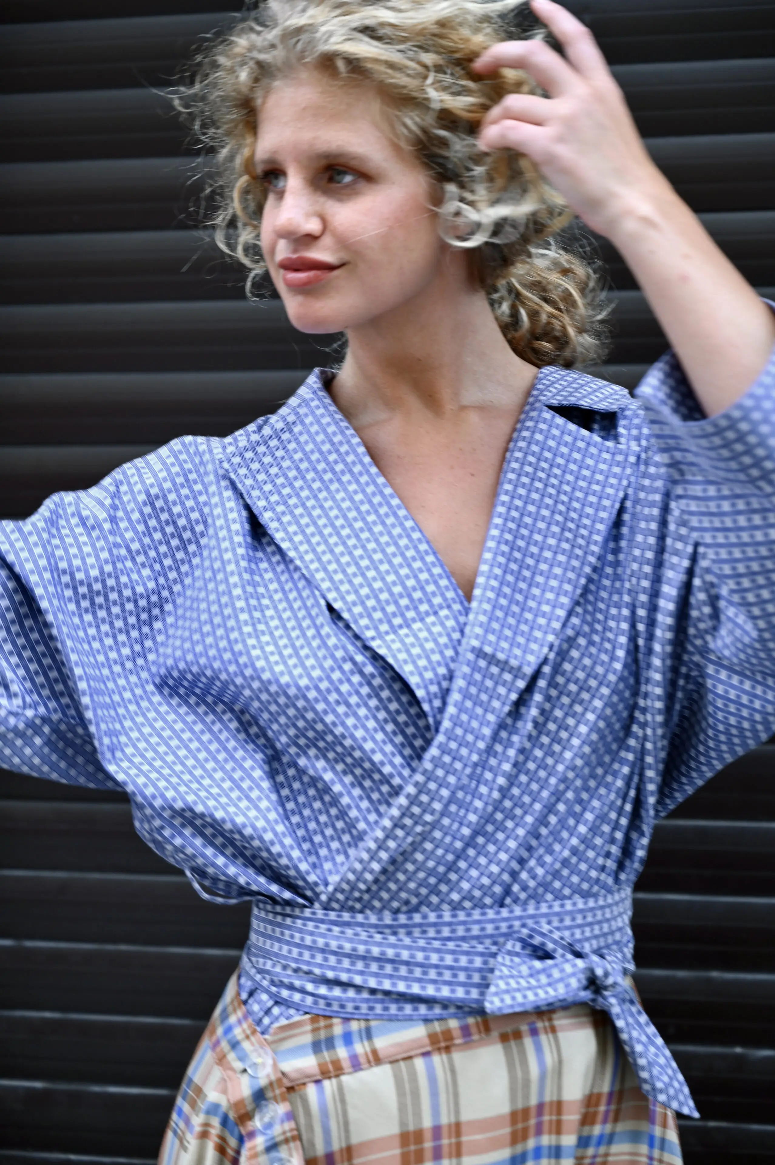 Stejně jako střih, tak i kostky se skamarádí s čímkoliv ve vaší skříni. Vemte si ho k sukni, na tričko, košili, nebo jako top obvázaný páskem, třeba na mašli. A když ho budete nosit často, třeba se jako kouzelníci naučíte vznášet na bleděmodré obloze.