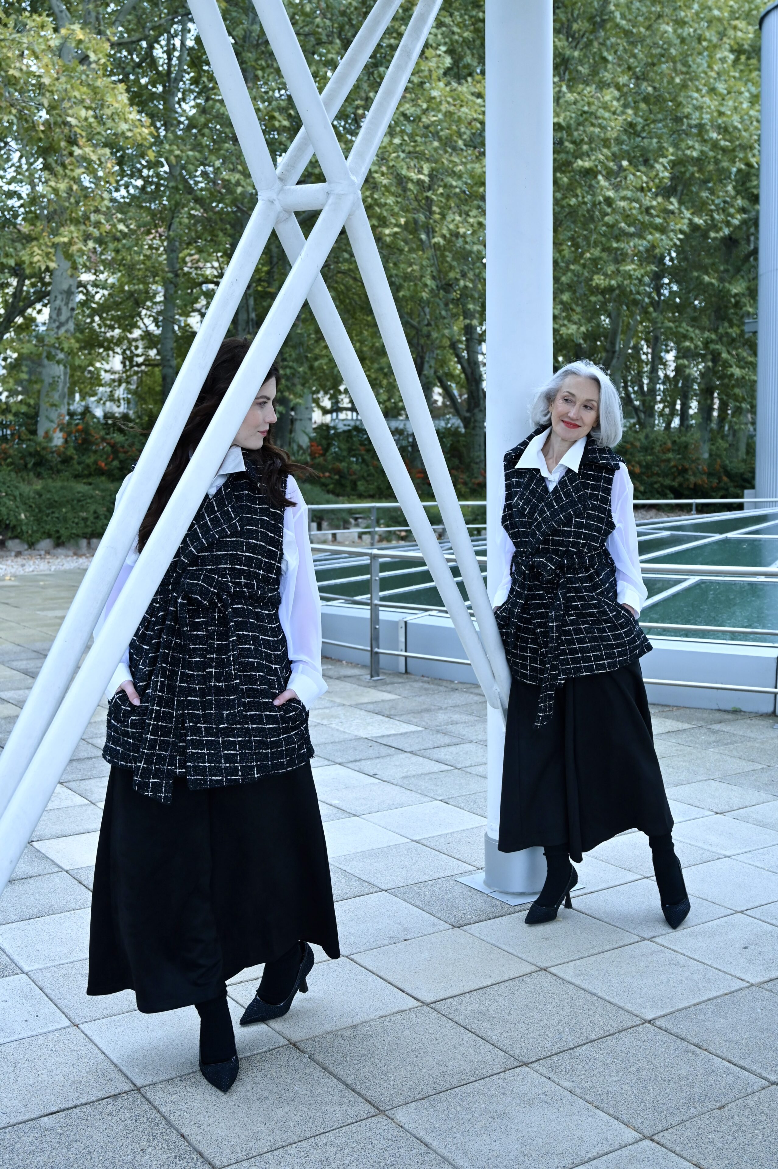 Volný široký střih připomíná sukni ale praktičnost zůstává v nohavicích.